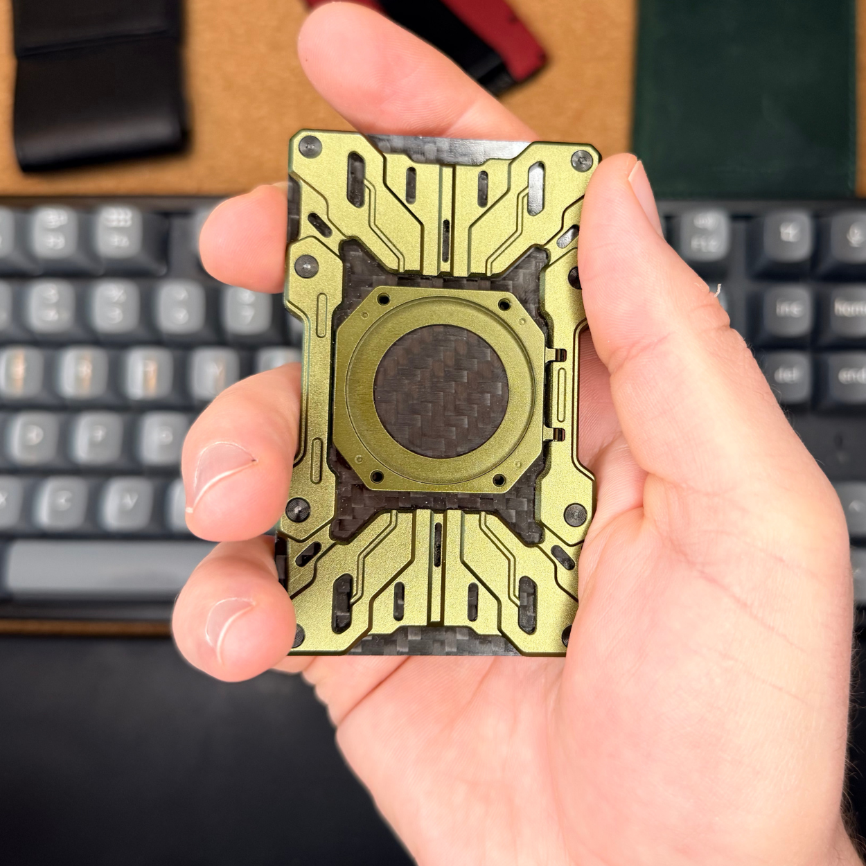 This Peakzooc Mech Guard Wallet has to be one of the best deals for a 1-to-1 competitor of the Ridge Wallet. It has the EXACT same sandwich design, the same horizontal ejector, and oh, did I mention it looks like a robot?