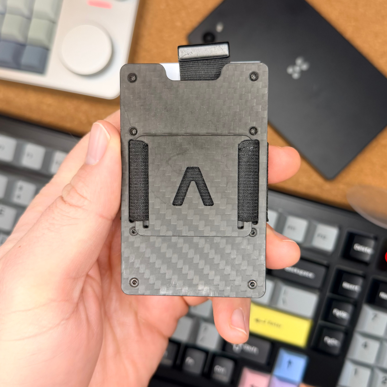 Now, that’s not to say this carbon fiber wallet that holds up to 12 cards is a carbon copy though (even if it carries many of hte same features), but it has these nifty bifty magnetic plates that make it incredibly easy to swap out the money clip and cash strap (both of which come with it) at any point in time (no screw driver needed people).